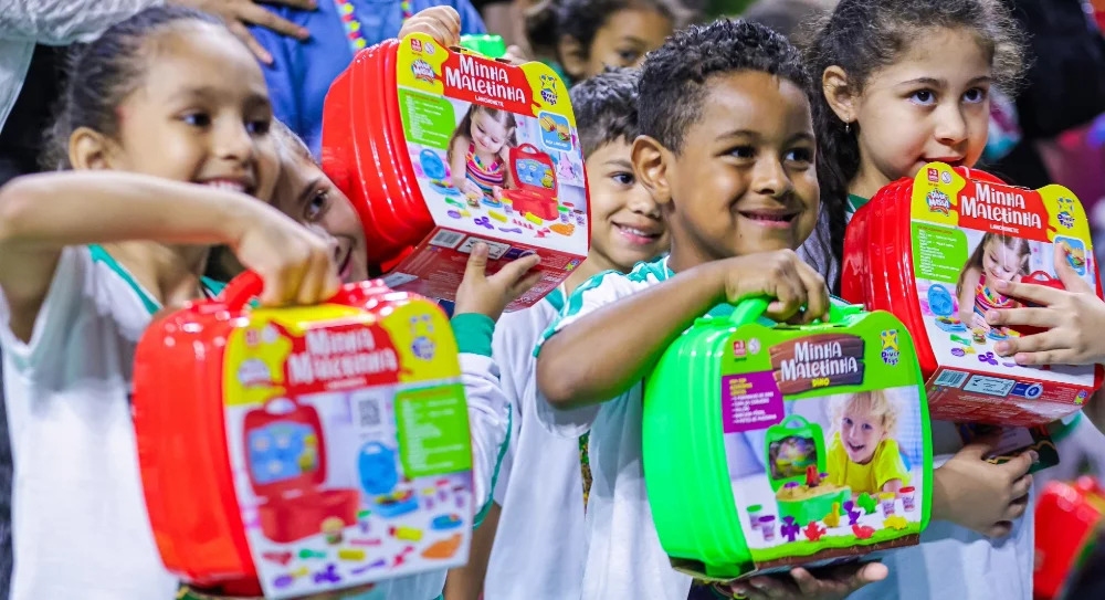 Natal Mágico 2025 entrega brinquedos para alunos da rede municipal