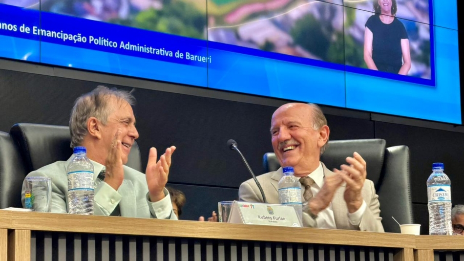 O prefeito de Barueri, Beto Piteri, acompanhado do ex-prefeito Rubens Furlan, participou nesta quinta-feira (26) um evento em comemoração ao aniversário de emancipação político-administrativa da cidade, na Câmara Municipal. A cerimônia reuniu deputados federais, Marcos Pereira e Cezinha de Madureira, a vice-prefeita Dra. Claudia, o presidente da Câmara, vereadores, secretários municipais, além de lideranças comunitárias e religiosas. Aberto à população, o evento contou com a presença de centenas de moradores que prestigiaram a celebração.